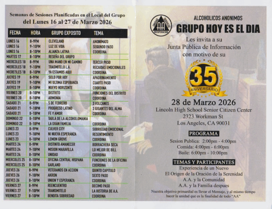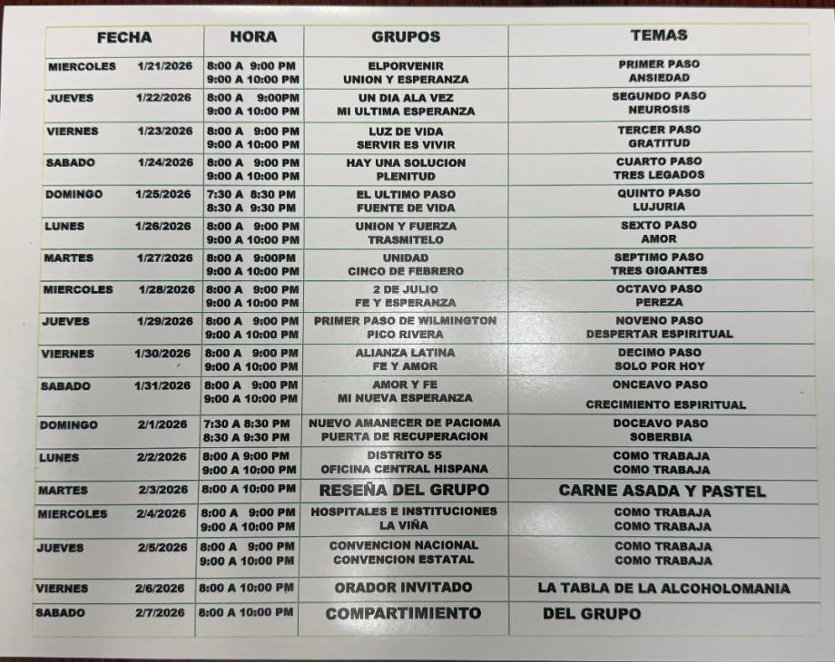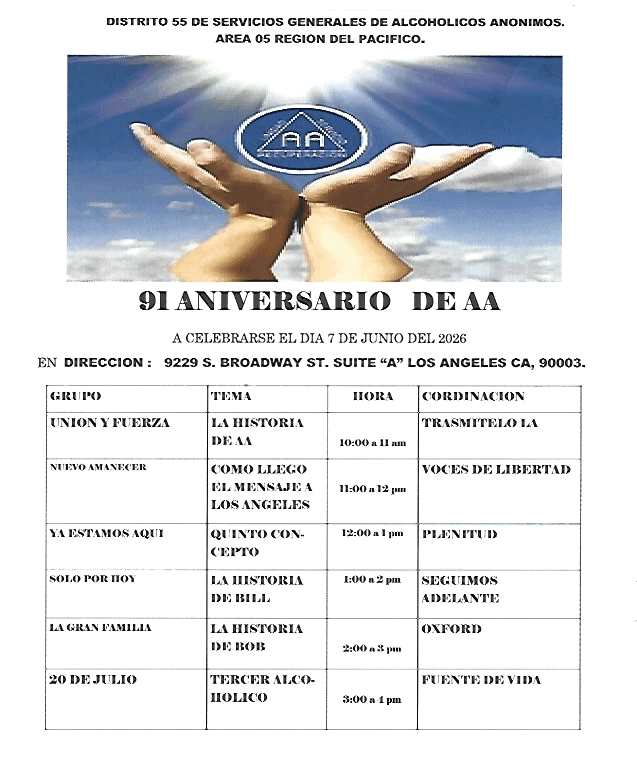 DISTRITO 55 SERVICIOS GENERALES DE ALCOHOLICOS ANONIMOS AREA 05 REGION DEL PACIFICO